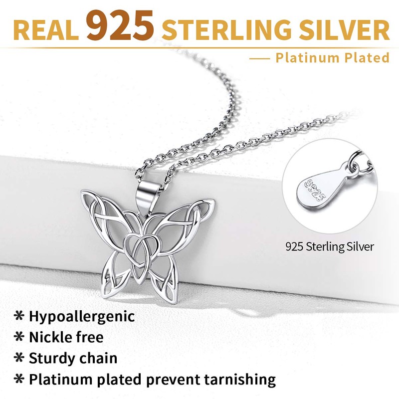 ChicSilver Celtic Butterfly Necklace for Women Ladies 925 Sterling Silver Irish Knot Jewelry Amulet Pendant with Chain
