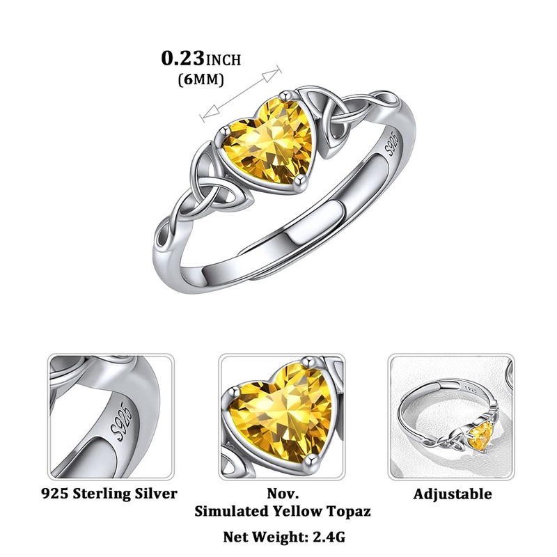ChicSilver Citrine Ring Yellow Heart Celtic Knot Ring November Birthstone Rings for Women