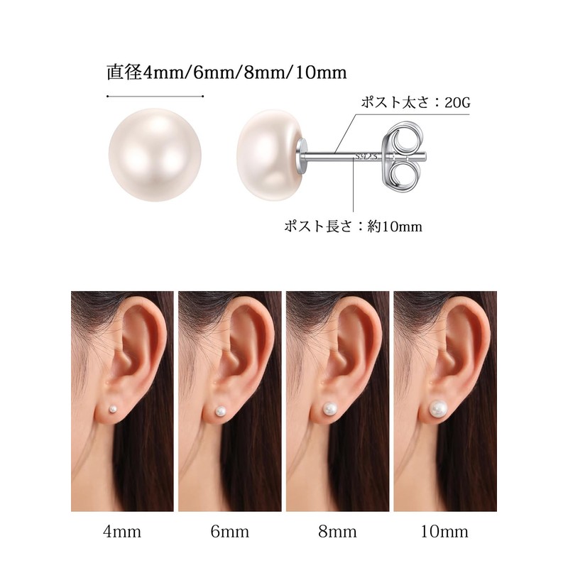 - Pearl Earrings: 0.2 inch (4 mm) is the most popular basic size, 0.2 inch (6 mm) and 0.3 inch (8 mm) are not too flashy, and 0.4 inch (10 mm) is a glamorous appeal. Available in sizes ranging from elegant petite sizes to large sizes for ample volume