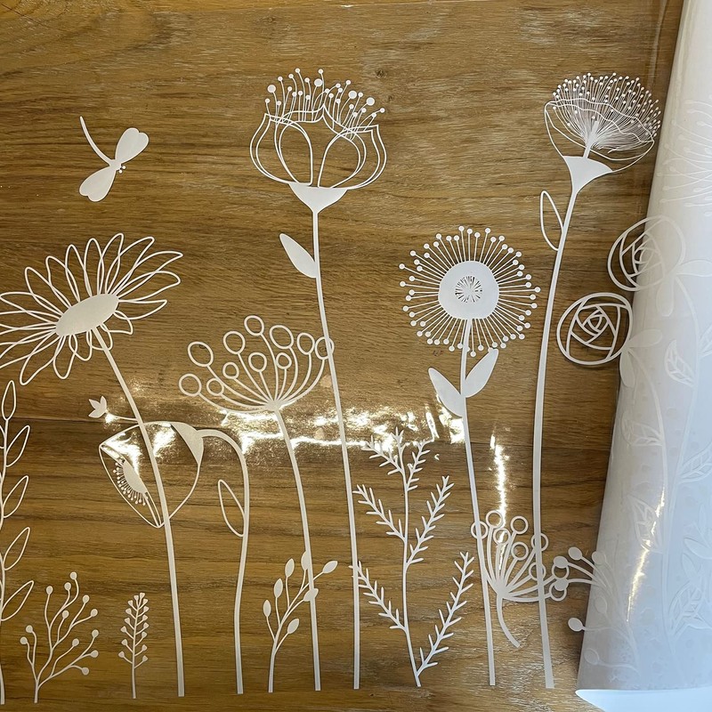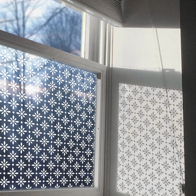 ChicSkin Pure White Window Film Decorative Pattern Design, Removable See Through Static Cling for Glass Window Door, Abstract Floral 78.74"x15.35"
