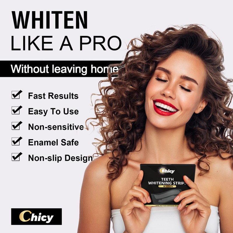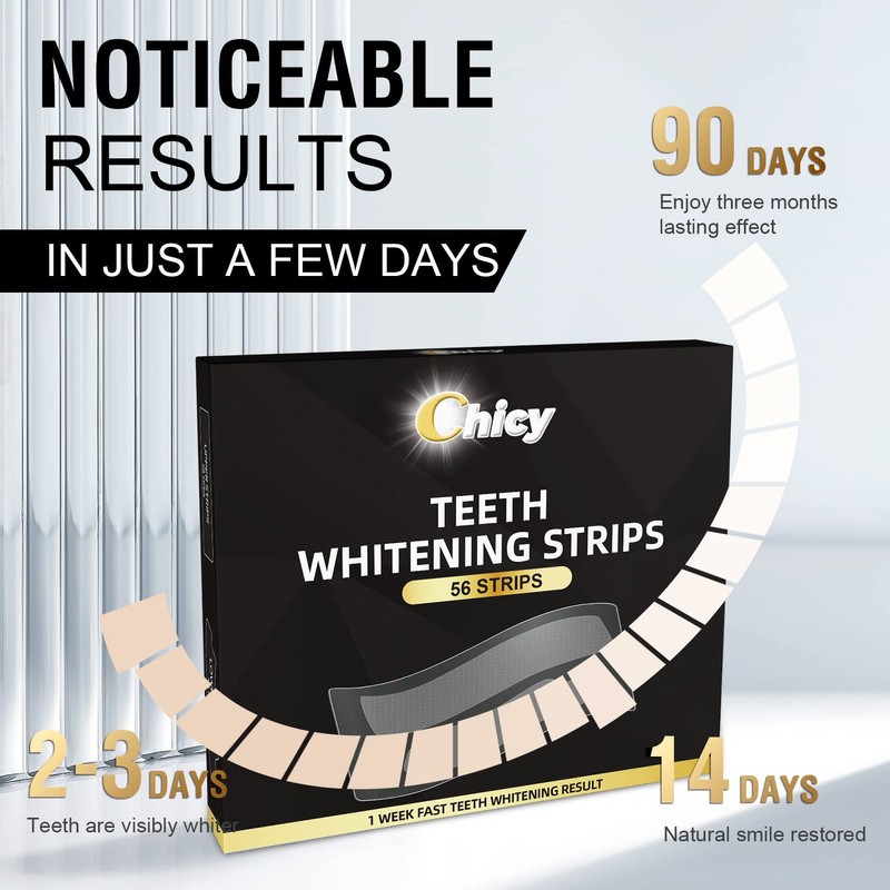 CHICY Teeth Whitening Strip for Sensitive Teeth 56 Counts, Non-Slip Whitening Strips, Effective Teeth Whitening Kit, Fast Result Remove Stains, Professional Tooth Whitening - Whitener Strips 28 Treatments