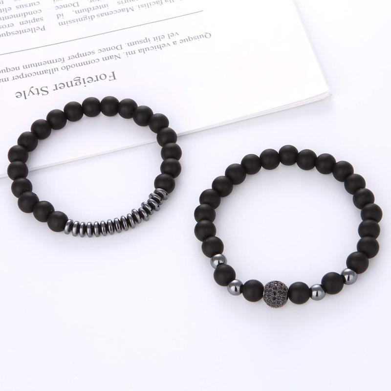 CHIFEI 2PIEZA Juego de Joyas Pulsera Unisex de Zircón Piedra Natural Color Oro Rosa Negro Brazalete Bronce Ajustable (Negro)