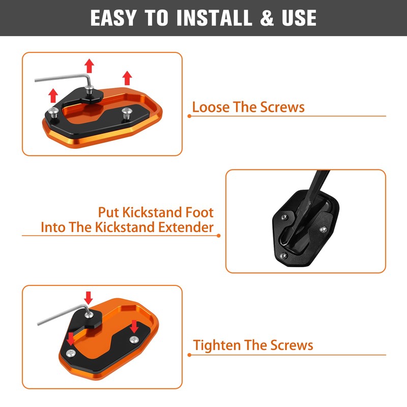 - SIMPLY INSTALLATION : Easy to install,just loose the screws,and then put kickstand foot into the kickstand extender,finally tighten the screws