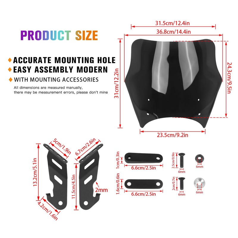- PACKAGE INCLUDES - 1pc motorcycle windshield windscreen ,1 set installation hardware