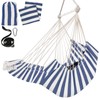 - Comfort and Health benefits:They offer a gentle swaying motion that can be very soothing.Hammock chairs are incredibly comfortable and provide a unique sitting experience that can offer several health benefits, including improved circulation, reduced muscle tension, and better sleep quality.The feet support is foldable,so you can sit or recline.It comes with 2 cushions to ensure maximum comfort.