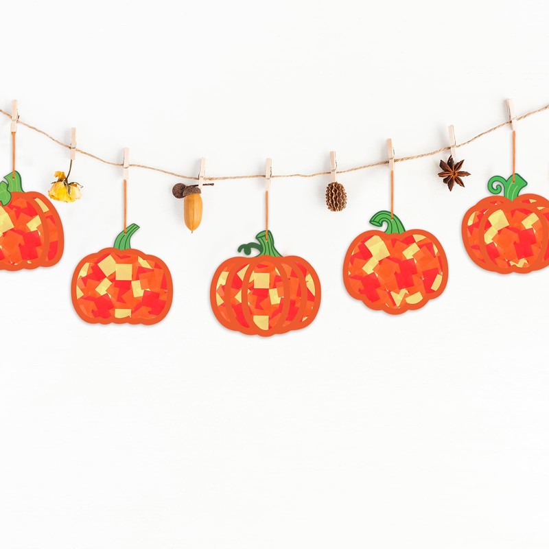 Chiisong 24 Sets Pumpkin Crafts Kit DIY Tissue Paper Sign Crafts for Back to School Fall Harvest Thanksgiving Religious Christian Party Fun Home Actives