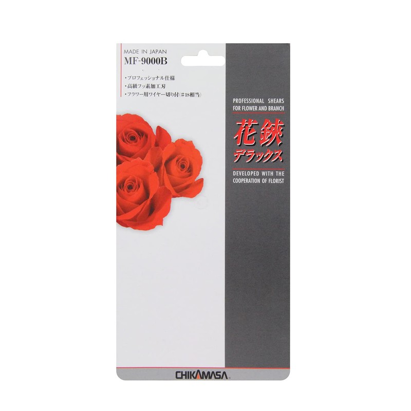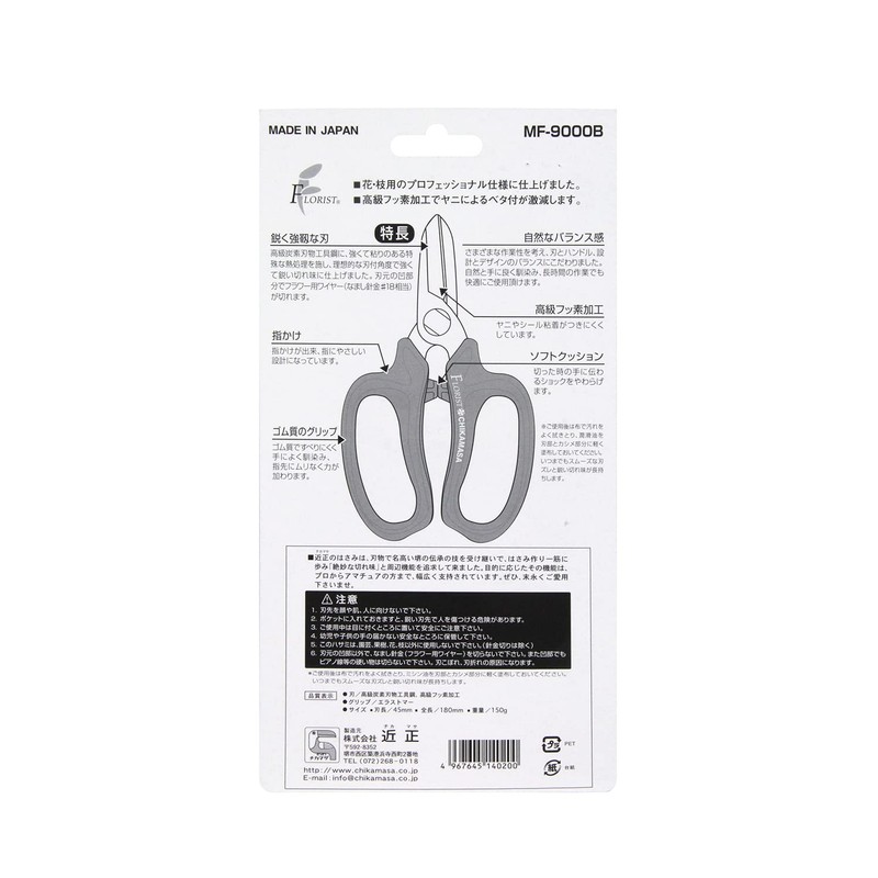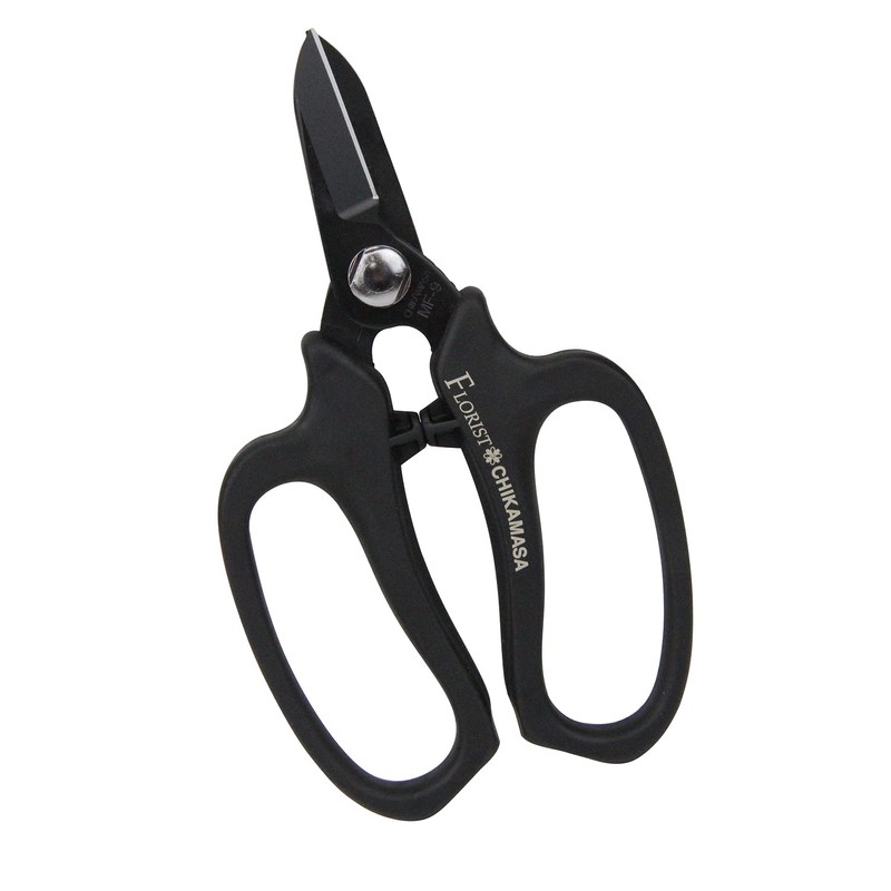 CHIKAMASA Florist, Pruning Flower Twigs Scissors Deluxe, Made in Japan, (Sap-Resisting Blade) High Grade Carbon Steel Blade with Fluorine Coating [Black] MF-9000B