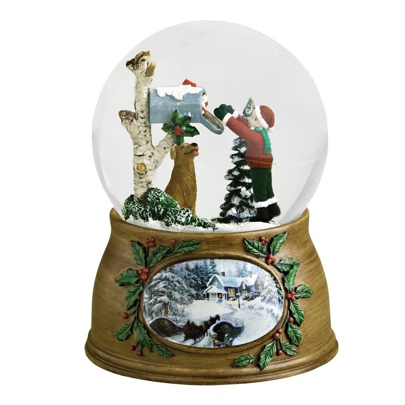 - Child and Dog Checking Mailbox Musical Glass Christmas Glitterdome Snow Globe