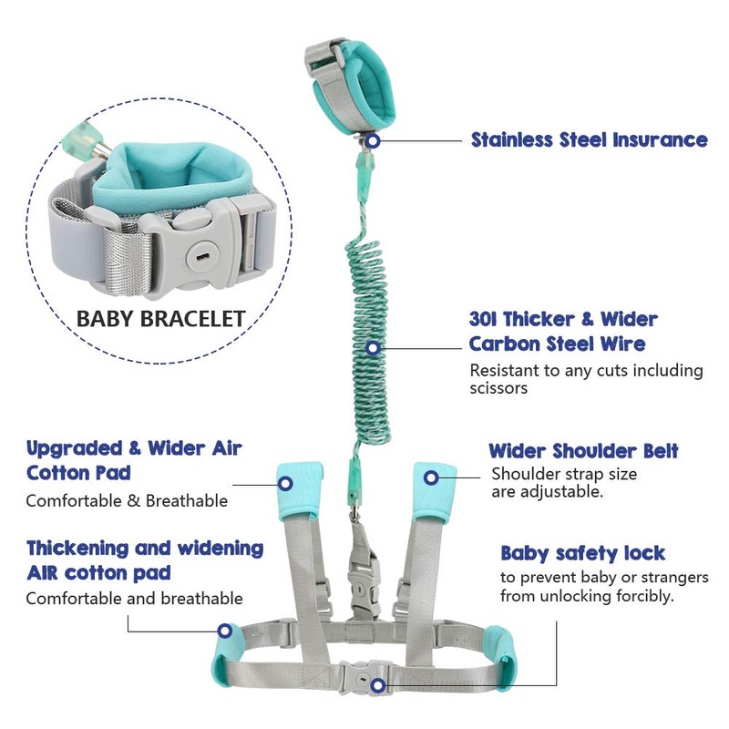 - 2 IN 1 UPGRADED DESIGN. You are not only get an Child safet Leash ,you got a child backpack leash as well. You can use anyway you want.