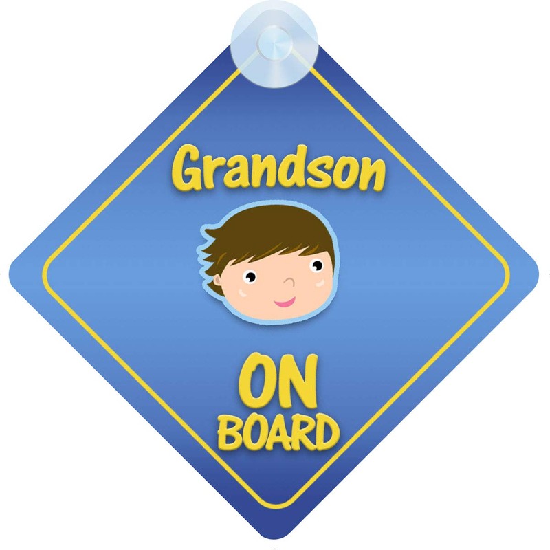 Child on Board Car Sign - Grandson Design with Strong Suction Cup | QG Ltd