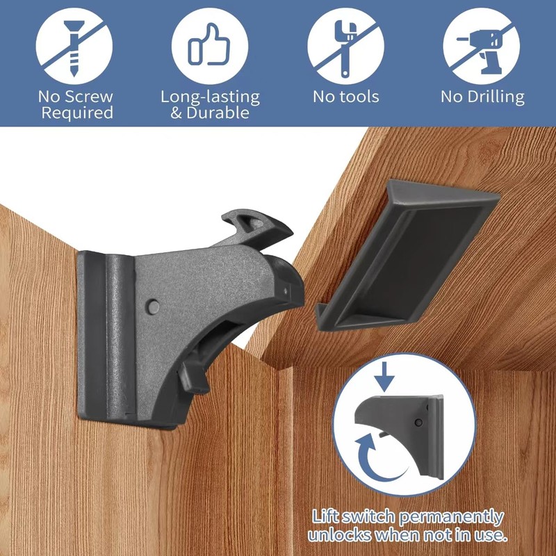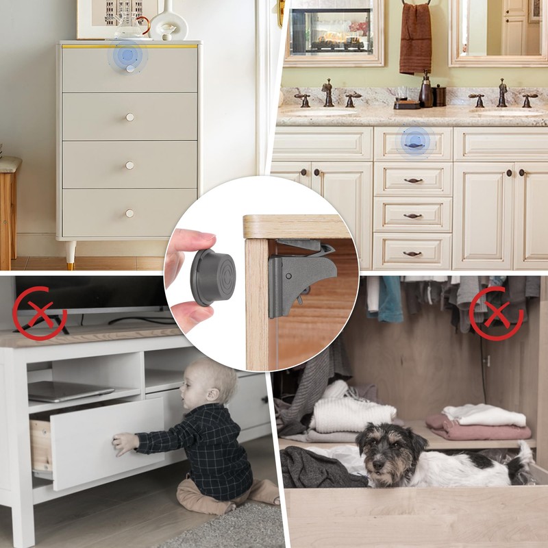 - WORKS FOR ALL CABINETS AND DRAWERS: unlike other magnetic and knob cabinet locks, Our child safety locks for cabinets and drawers are designed to remain hidden from view, keeping your home looking stylish and safe