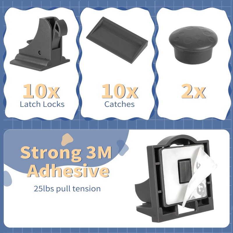 - These cabinet locks aren't limited to just the kitchen. They're perfect for use in drawers, bathroom cabinets, office and school, ensuring safety throughout your home