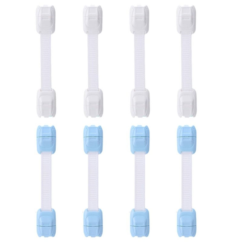 Child Safety Strap Locks, 8 Pieces Child Safety Strap, Cupboard Door Locks for Children, Baby Proof for Cabinets Drawers Toilet Fridge Locks, Adjustable, No Drilling, White, Blue