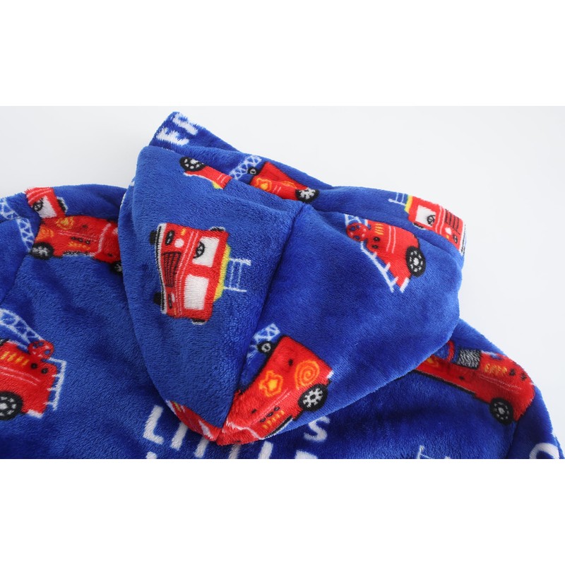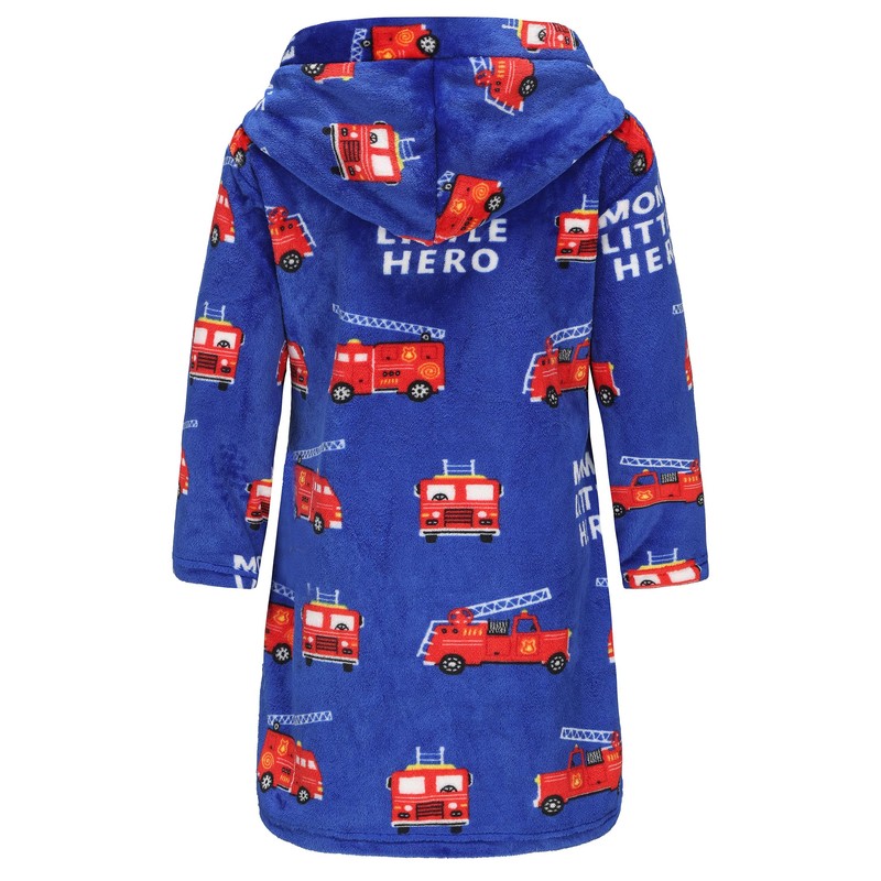 Childlike Me Boys Fleece Bathrobe Hooded Toddler Soft Fuzzy Robe for Kids 2-16 Years Blue Fire Fighting Truck 5-6 Years