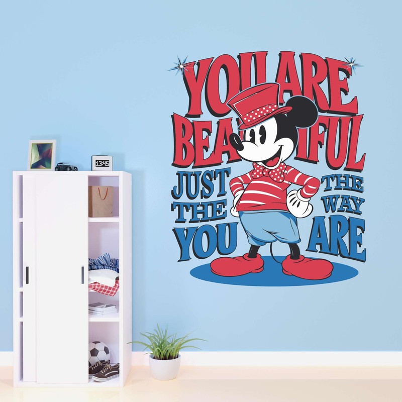 Children Beautiful Just The Way You are Cute Quote Wall Decal Decoration Cute Minnie Pluto Cartoon Character Cool Cute Kids Cartoon Lasts Years and Easily Removable - Size: 8 in(W) x 10 in(H)