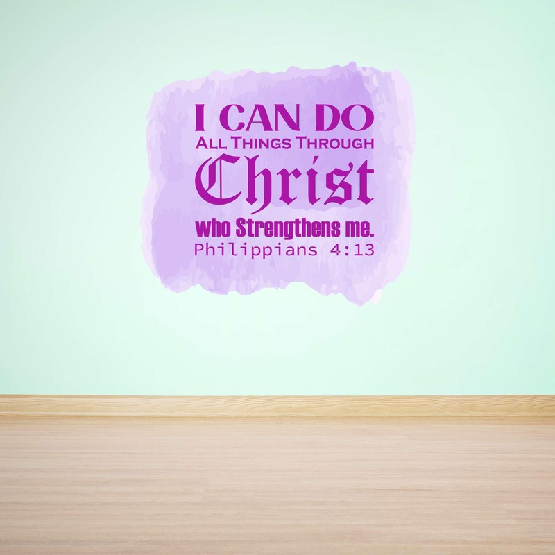Children I Can Do All Things Empowering Quote Wall Decal Decoration Religious Bible Verse Philippians 4:13 Quote Through Christ Lasts Years and Easily Removable - Size: 10 in(W) x 9 in(H)