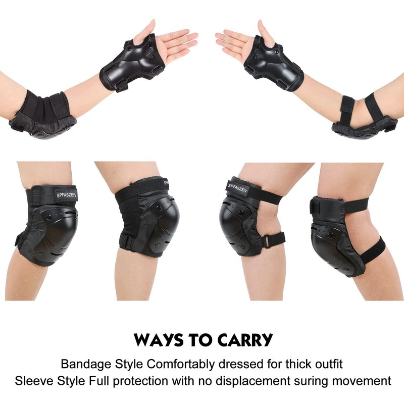 Children's and Adult Knee Pad Set, Protector Set 6 in 1 with Knee-Elbow Wrist Guards, Protective Equipment, Adjustable Wrist Guards for Rollerblading Skating Skateboard Scooter Cycling (BK M)