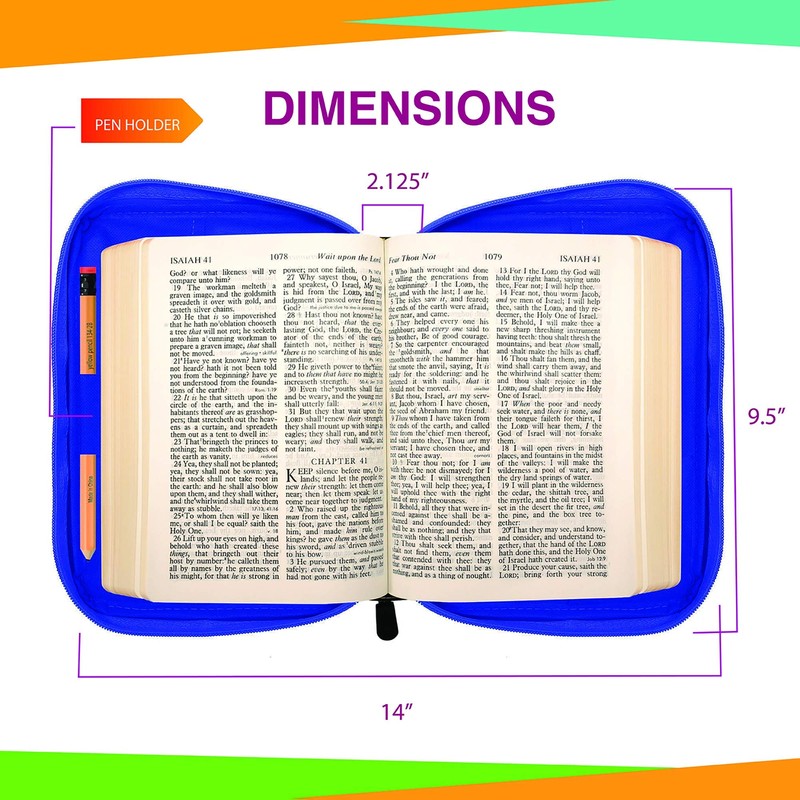 - SECURE WRAP AROUND ZIPPERED ENCLOSURE – smooth gliding zipper opens and closes with ease while holding and protecting the Bible and ancillary’s inside