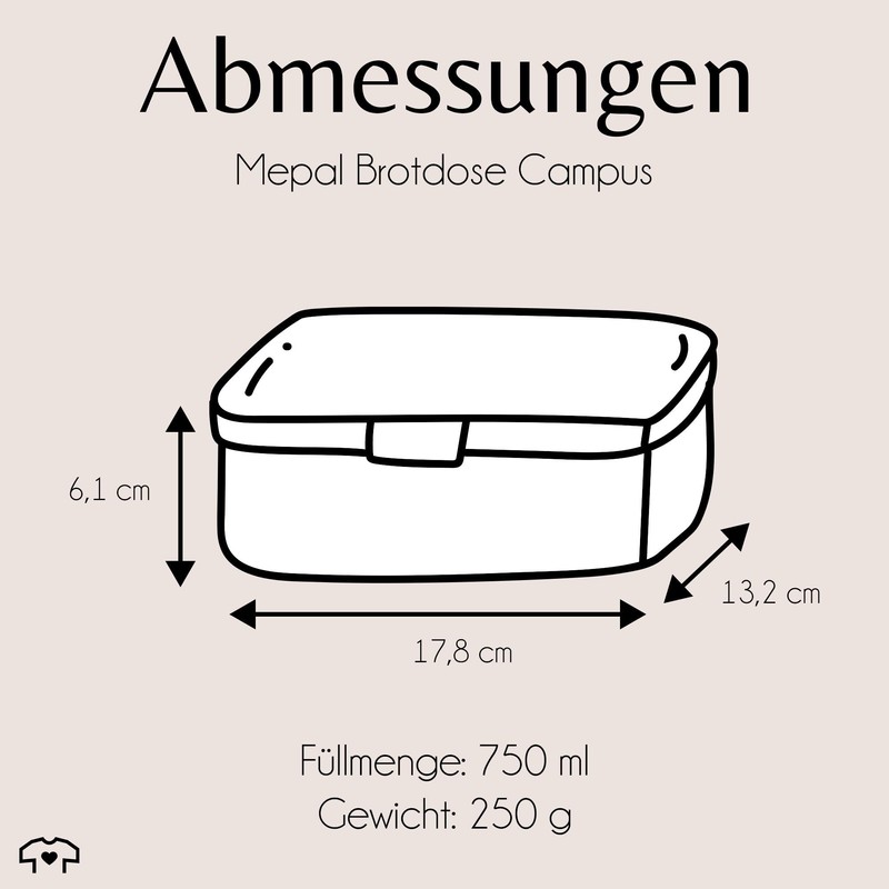 The dimensions are 132 mm width, 178 mm length and 61 mm height. The lunch box has a weight of 250 grams.