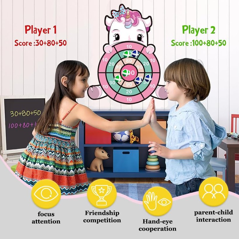 - Classic party games for children: dartboard children, unicorn toy theme dart board, it is a game that children really enjoy