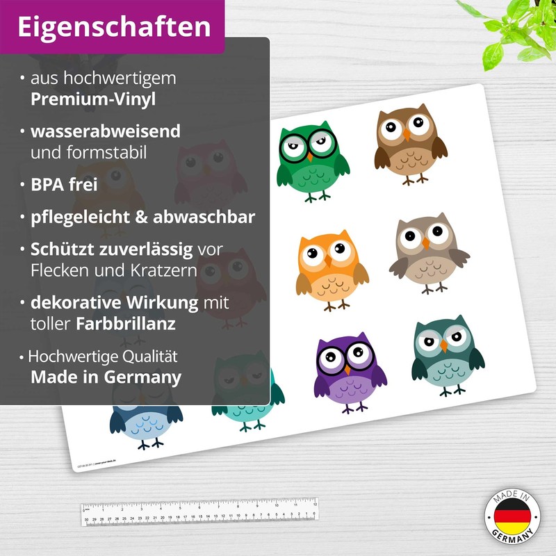 Children's Desk Mat - "Cute Colourful Owls" - Made of First-Class Durable Vinyl (BPA Free) - 60 x 40 cm - Non-Slip Desk Mat with Best Protection - Made in Germany