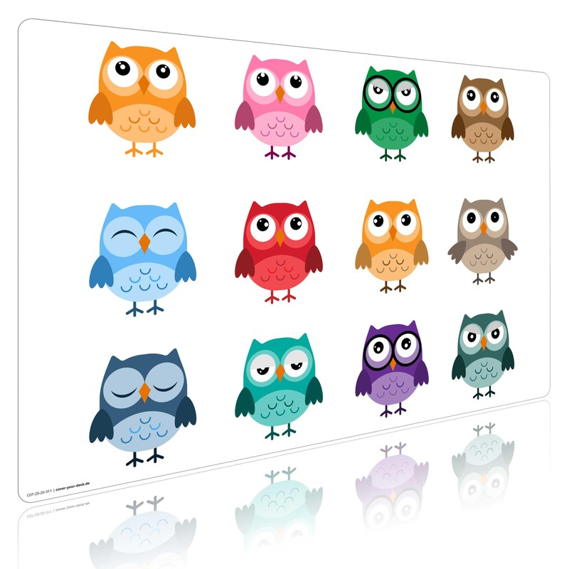 Children's Desk Mat - "Cute Colourful Owls" - Made of First-Class Durable Vinyl (BPA Free) - 60 x 40 cm - Non-Slip Desk Mat with Best Protection - Made in Germany