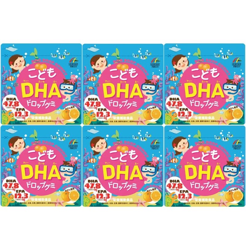 ユニマットリケン Children's DHA Drop Gummies, 90 Tablets x 6 Packs