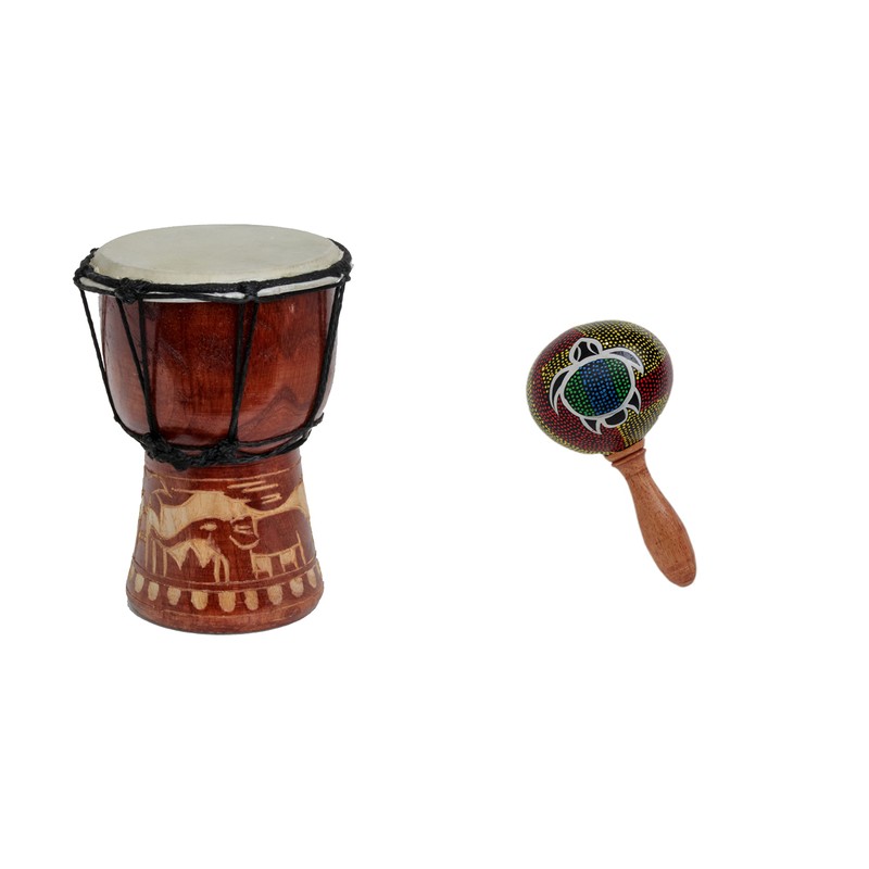 Children's Djembe Drum Bongo Medium 30 cm Elephant Wood + Rattle Tortoise R1