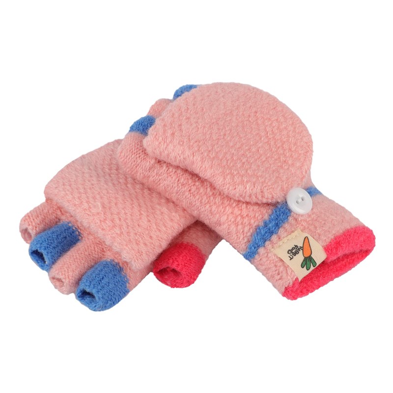 Children's Half Finger Gloves with Flip Top Mittens Knitted Gloves Five Finger Mittens Winter Gloves Knitted Cycling Gloves 3-10 Years Old, PINK-F
