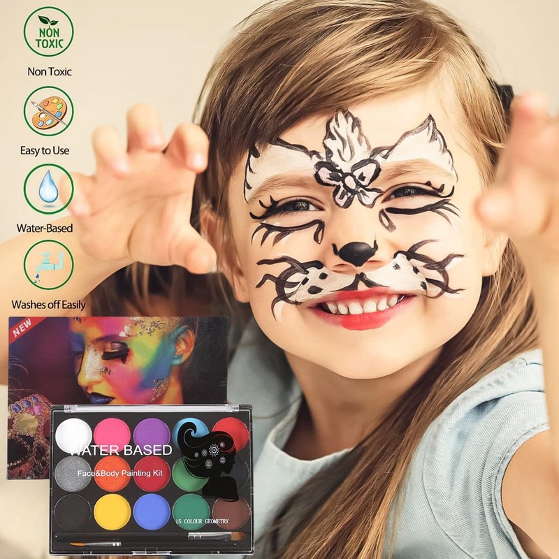 - Children's make-up sets: body painting make-up comes with 15 bright colours with a smooth and creamy texture for beautiful and easy application to let your imagination run wild