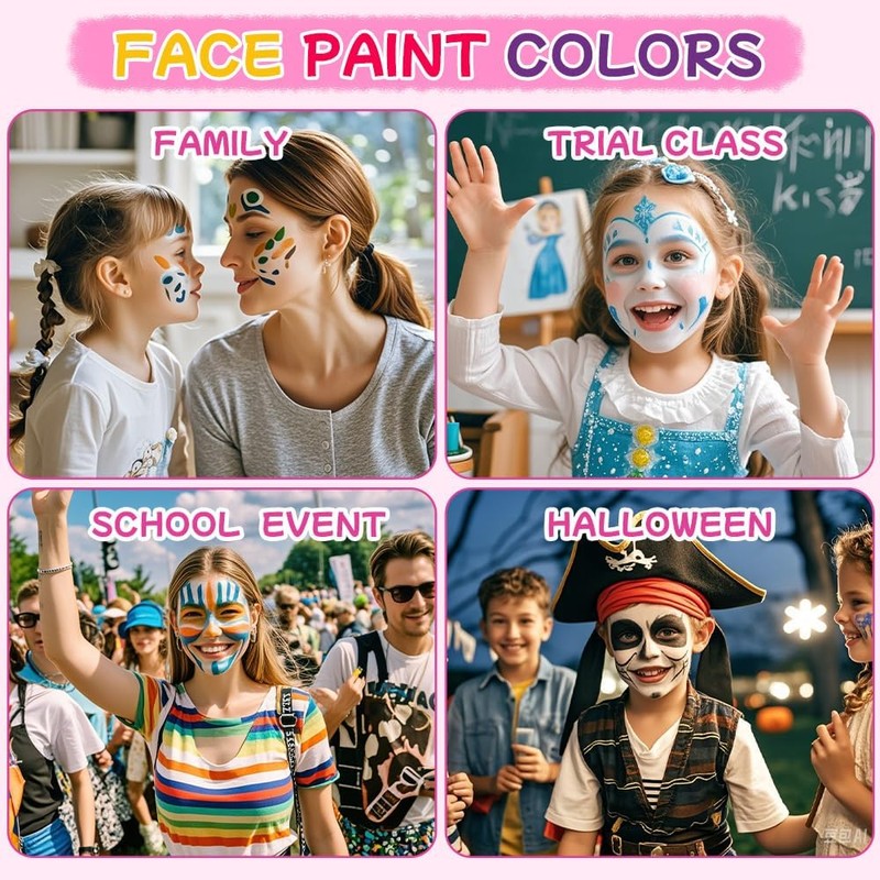 - Safe and gentle for sensitive skin: the face paint is a high-quality professional make-up, hypoallergenic, skin-friendly, non-irritating and can maintain the elasticity of the face and crack resistance. Safe and gentle for sensitive skin, ideal for children and adults