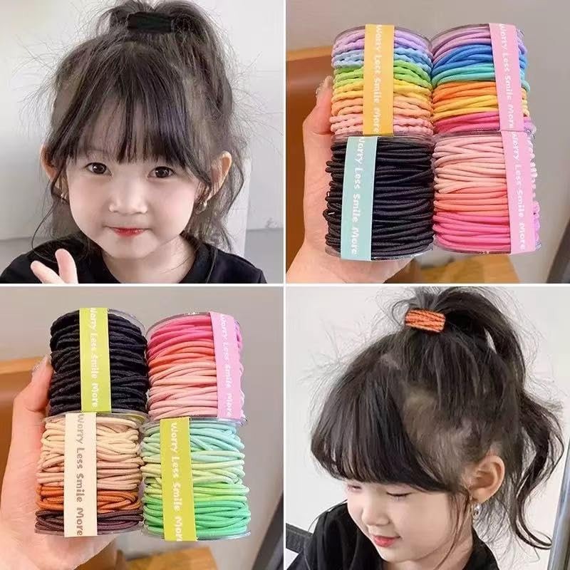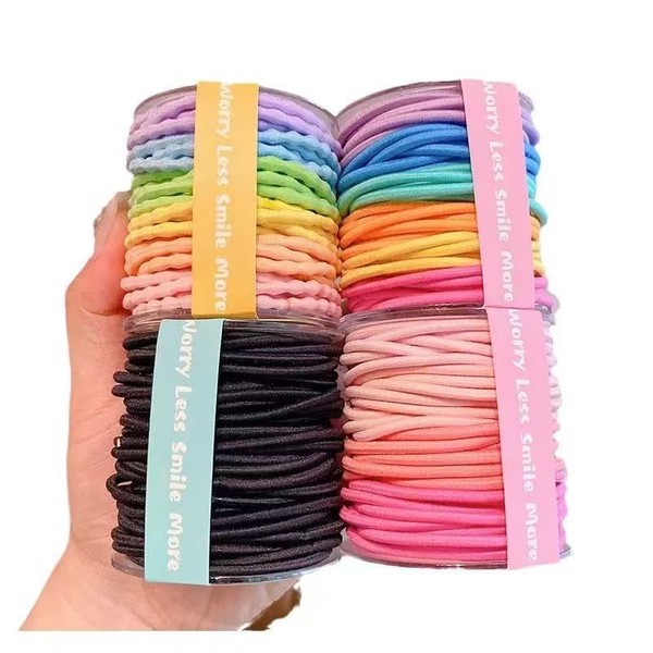 Children's rubber bands, high ponytail hair ties set, elastic ponytail holders, hair ropes that won't damage hair. A set of 4 pieces (192 pieces in total), in colorful colors.