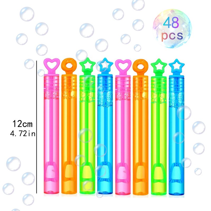 - Adorable mini bubble sticks: each bubble wand measures 4.72 inches and contains a 2-ounce bubble solution. The special bubble solution allows many neon bubbles to blow every time. And the tube is made of strong and durable plastic and can be reused by filling with bubble solution.