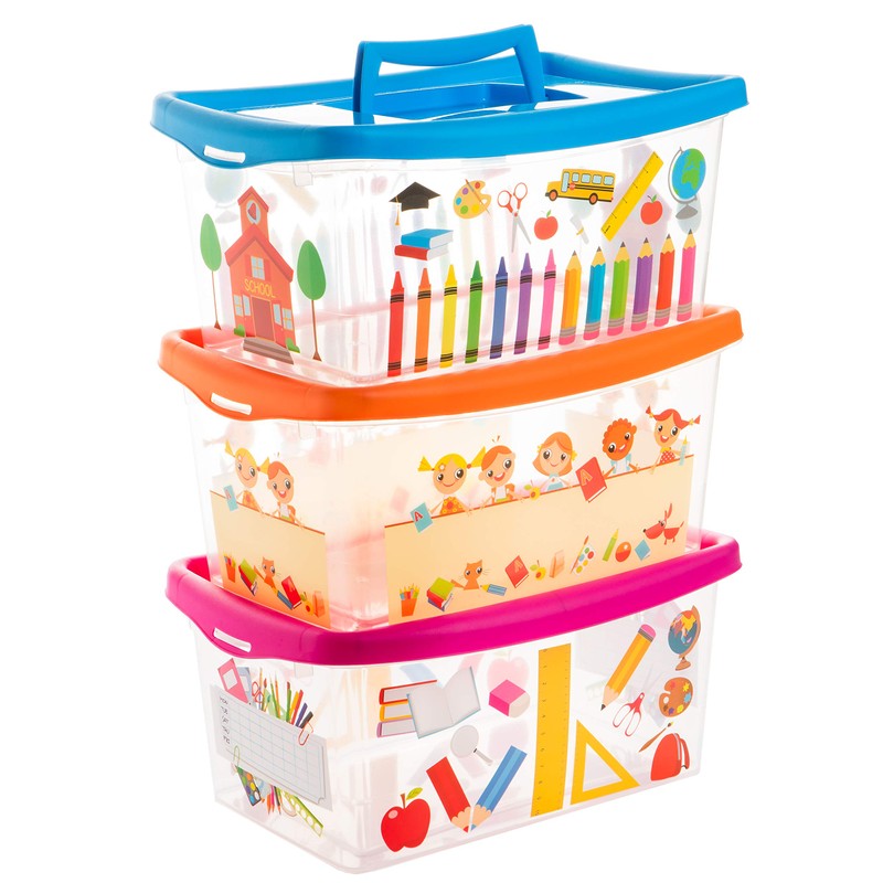 Children's Storage Boxes with Lid and Handle 4 Litre Transparent Assorted Set of 3