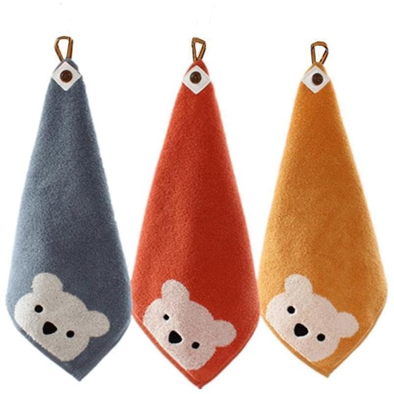 - 【Towel with Loop】11.8 x 11.8 inches (30 x 30 cm) towel with loop. Perfect for nursery and kindergarten. You can hang it on a hook, convenient to wipe your hands in the kitchen. This is a 3-piece set and is perfect for washing