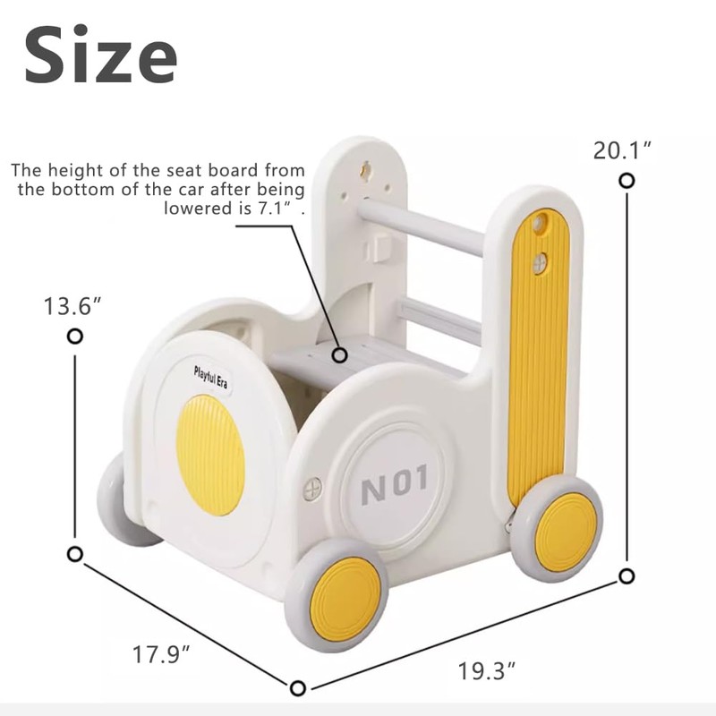 • Engaging Push & Pull: These toys encourage babies to crawl, walk, and explore their surroundings through engaging push and pull m🧰 [Multi-purpose] Under 1.5 years old (have not learned to walk) can use the cart as a baby cart to let the baby sit in the cart, you can push the way or walk the baby with a rope. It can be used as a baby stroller in the toddler stage, and the armrest height is 17.3" and 19.3 "respectively. When the baby grows up, it can be used as a toy storage car to store toys, books, dolls, etc.otions.