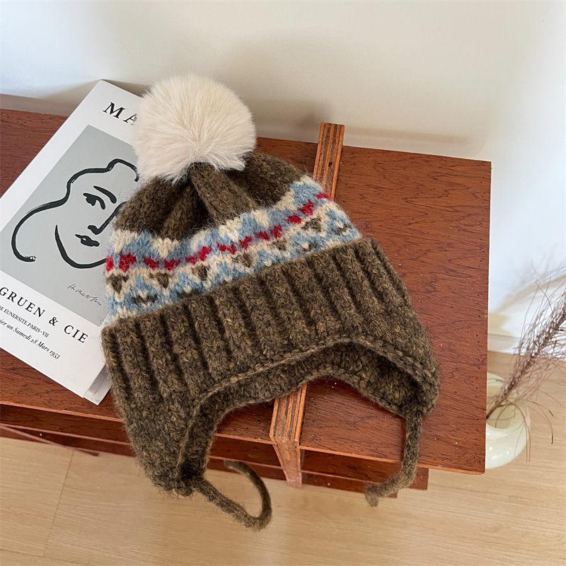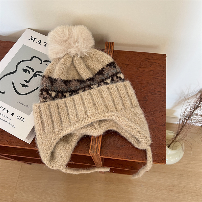 Children's Winter Ear Protection Knitted Wool Hat (Head Circumference) 48Cm)/Khaki 3ea