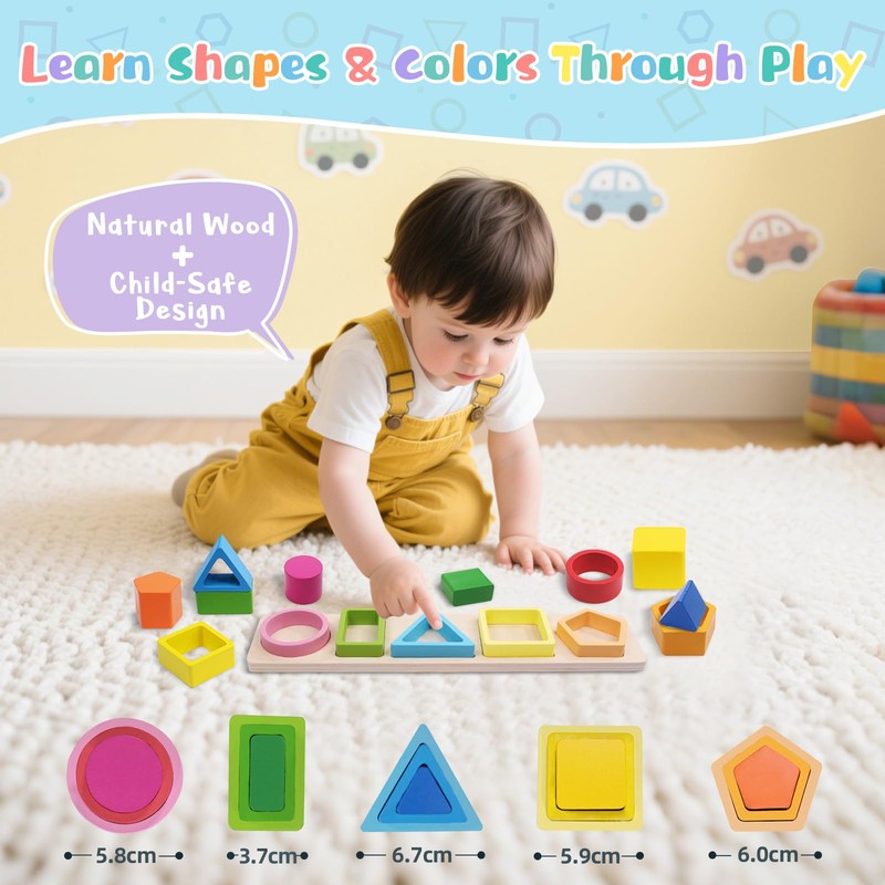 - Wooden toy for early education: Our Montessori shape sorting toy contains five geometric shapes and stackable wooden toys in rainbow colours. It is suitable for the sensitive learning and development phase of preschool children and promotes logical thinking. Children in the highly sensitive phase develop a sense of order through repeated play with our wooden toys.