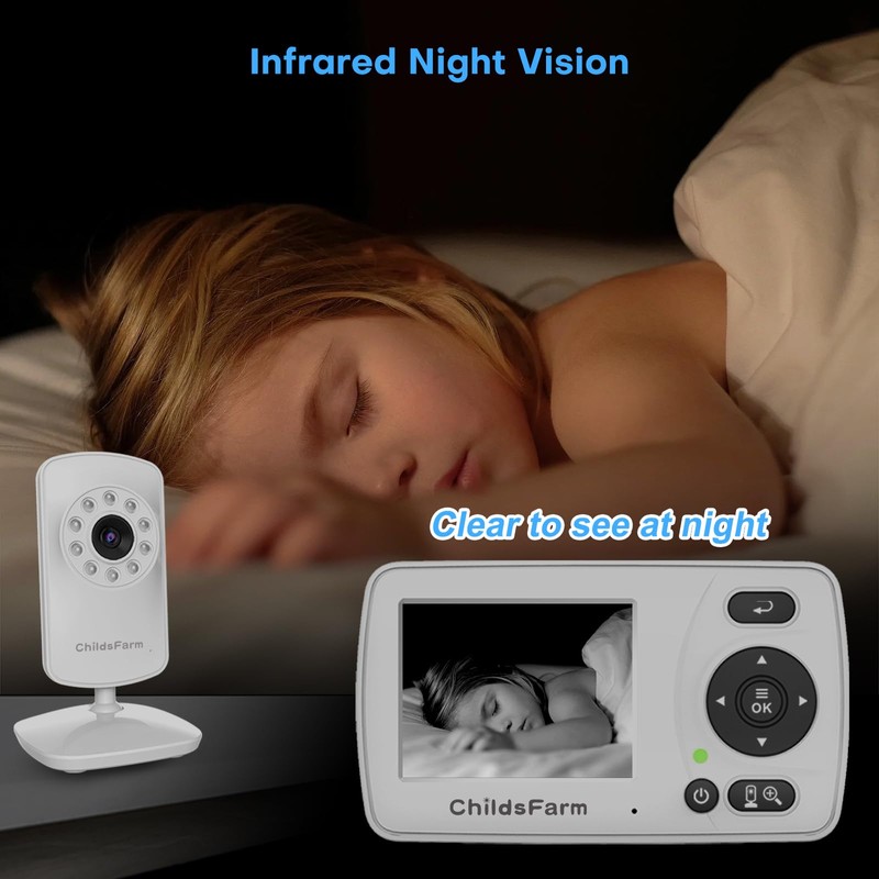 - 【Infrared Night Vision & All Day Caring】ChildsFarm baby monitor offers infrared night vision, allowing you to see your baby clearly in complete darkness. It automatically switches to night vision mode, ensuring uninterrupted monitoring of your baby's sleep. Whether it's day or night, Childs Farm provides continuous monitoring for your peace of mind and all-day care.