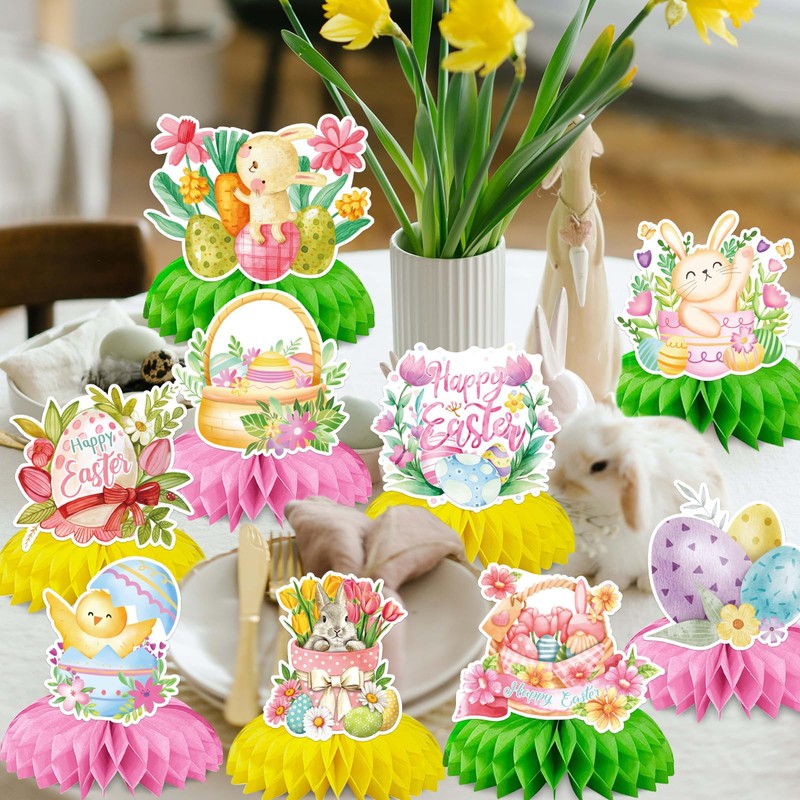 🐰🐣9Pcs Easter Honeycomb Centerpieces Table Decors - Multi Pattern Styles and Colors