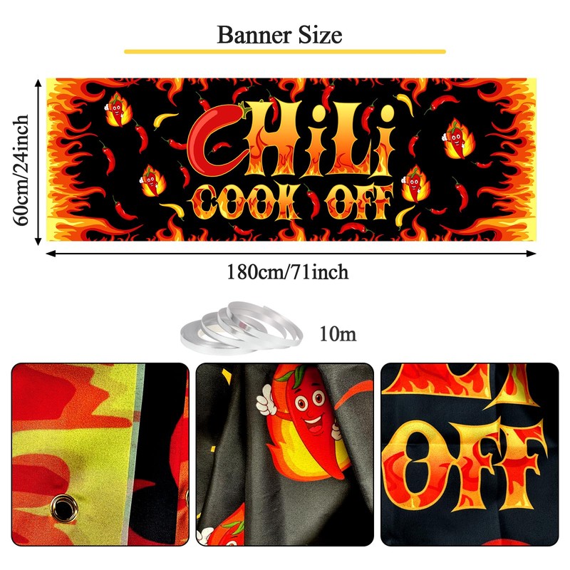 - DURABLE AND REUSABLE: Made from premium, weather-resistant materials, this chili cook-off decor banner is built to withstand the elements, making it perfect for both indoor and outdoor use. Plus, reusable chili cookoff banner, allowing you to bring the same festive spirit to future events