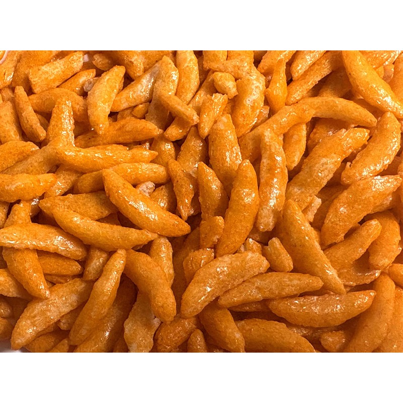 - Light airy snack with a rice cake consistency and a hit of spice and seasoning