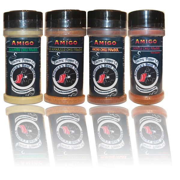 Amigo Chili Powder Gift Set – Jalapeño, Chipotle, Ancho, Aji Amarillo (4 Pack, 2 oz Each)