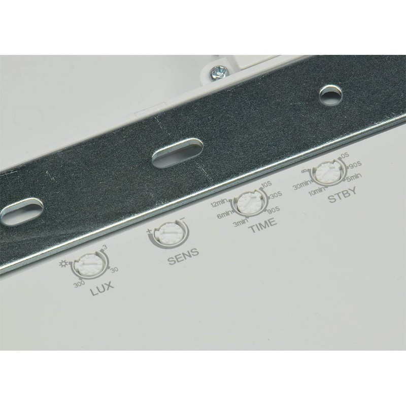 - The detection range is 360° with a radius of 1 to 8 metres. Surface-mounted sensor light with 26 cm diameter and adjustable values. Programmable wet room lamp with a light duration 10 seconds to 12 minutes, light sensitivity 3-2000 lux and adjustable sensitivity. Suitable as a cellar light, kitchen light, outdoor light for house entrance, stair light, underground garage.