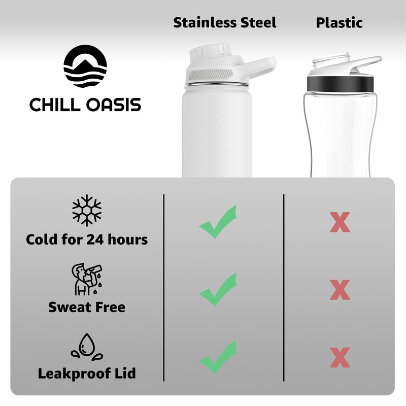 Chill Oasis Water Bottle | Compatible With Popular Flavor Cartridges | BPA Free, Leak Proof, Double-Walled Vacuum Insulated Stainless Steel, and Dishwasher Safe | Cold for 24 Hours (White, 32oz)