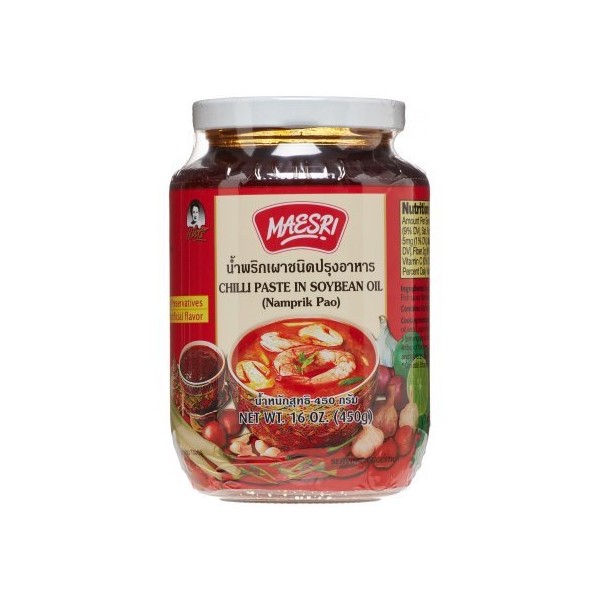 Chilli Paste in Soybean Oil - Nam Prik Pao (Thai Chili Paste) 16 Ounce Jar by Maesri