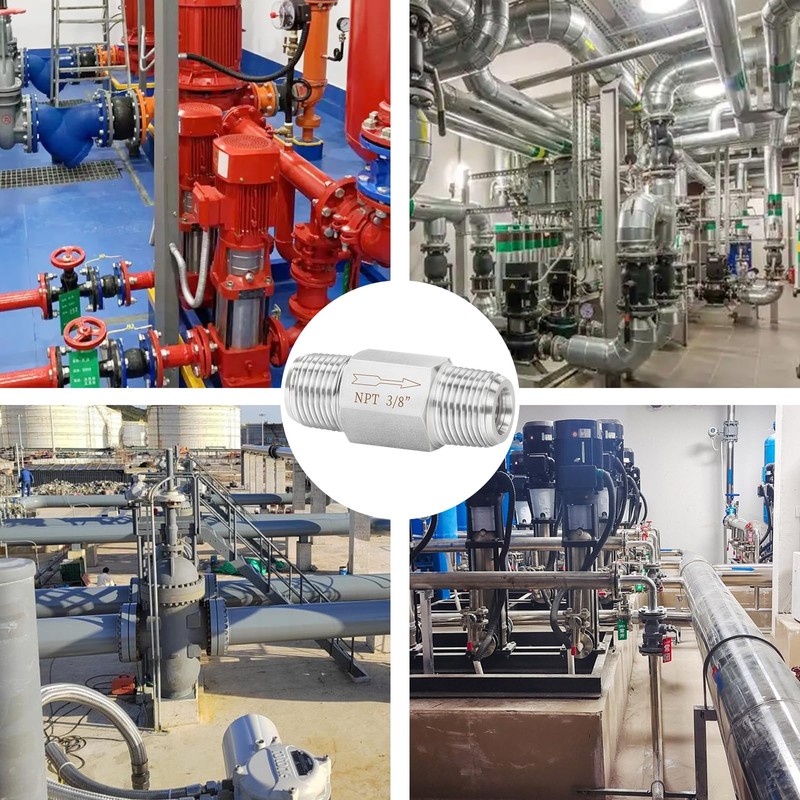 ChillWaves 304 Stainless Steel In-Line Siamese Check Valve 3/8" NPT Male Thread, One-Way Non-return Check Valve,Prevent Water Back-flow(1-PACK)