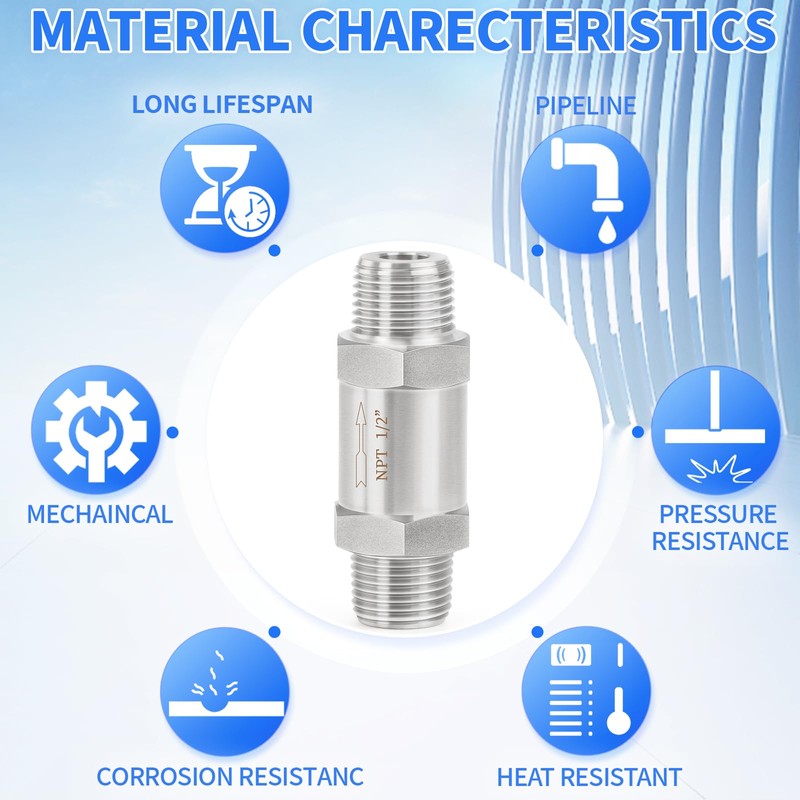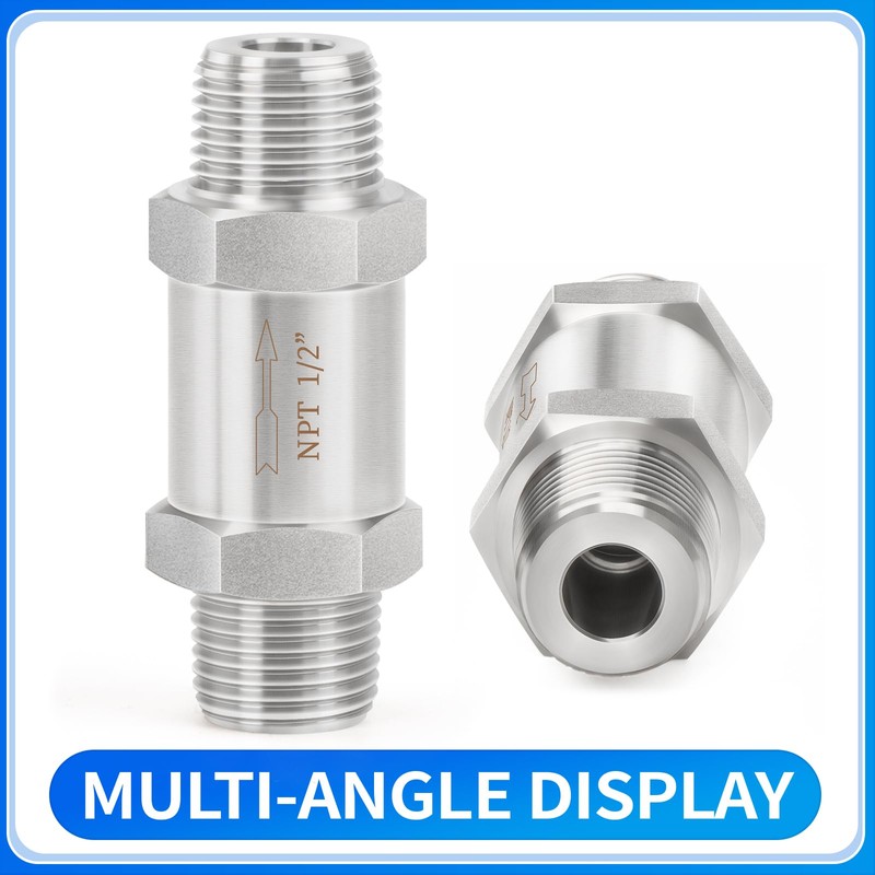 ChillWaves 304 Stainless Steel In-Line Split Check Valve 1/2" NPT Male Thread, One-Way Non-return Check Valve,Prevent Water Back-flow(1-PACK)