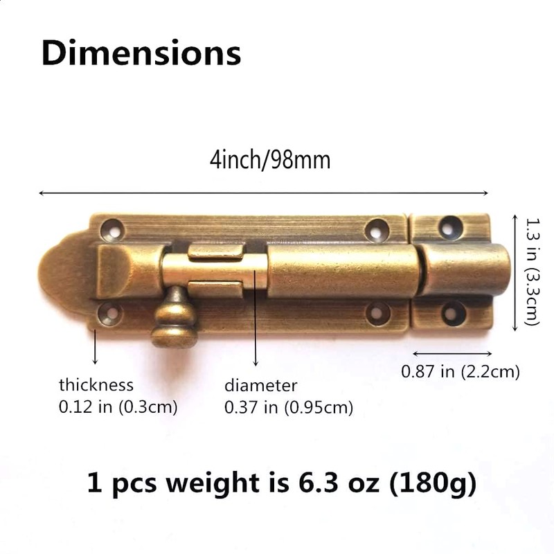 Chiloskit 4inch Solid Cast Brass Barrel Bolt Antique Brass Door Slide Latch L...