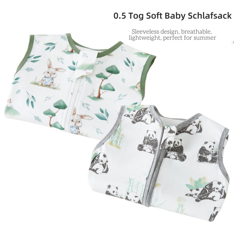 - Made from 100% high-quality cotton, so our sleeping bags are breathable and prevent sweating and overheating of your baby. Fluffy, soft and comfortable. Our summer sleeping bags have 0.5 tog and are therefore ideal for temperatures above 24 °C